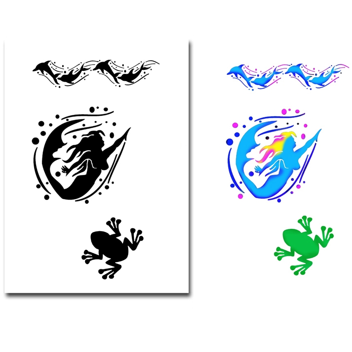 Airbrush Schablone zum Gestalten von einfarbigen oder mehrfarbigen Tattoo Designs.