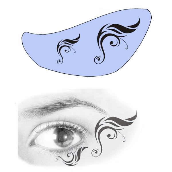 Fashion Design Schablone Airbrush Schablonen zur Dekoration am Augenrand und Augenlid - siehe Beispiel rechts - Schablonenshield mit zwei Motivgrößen aus reissfester Mylar-Foie