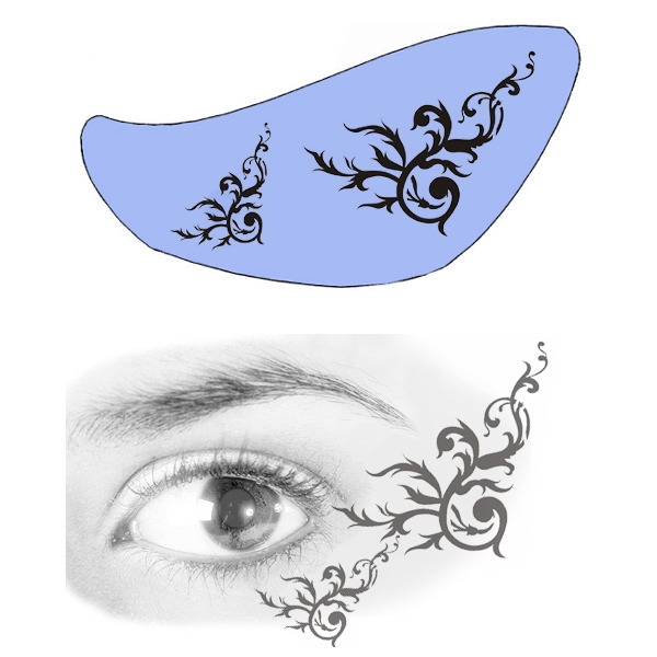 Fashion Design Schablone Airbrush Schablonen zur Dekoration am Augenrand und Augenlid - siehe Beispiel rechts - Schablonenshield mit zwei Motivgrößen aus reissfester Mylar-Folie
