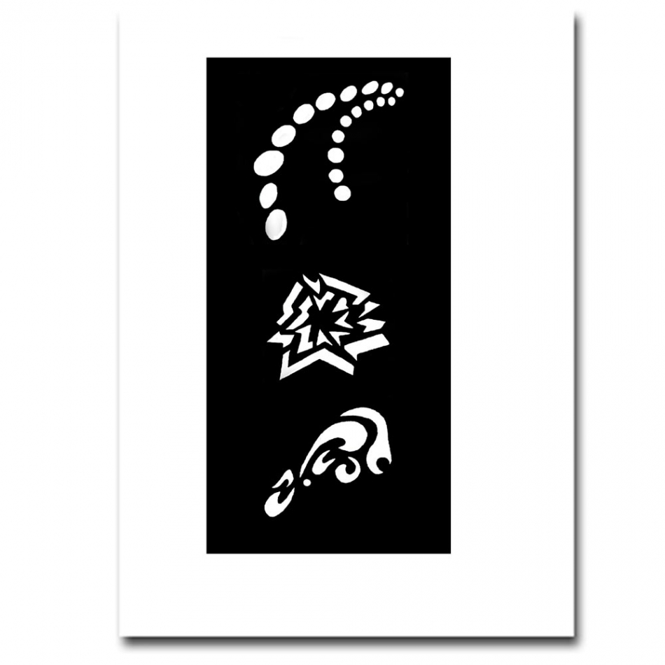 Fashion Design Schablone Airbrush Schablonen zur Dekoration am Augenrand und Augenlid - siehe Beispiel rechts - Schablonenshield mit zwei Motivgrößen aus reissfester Mylar-Folie